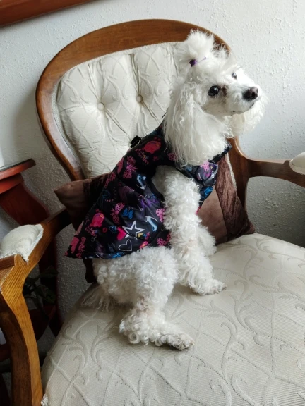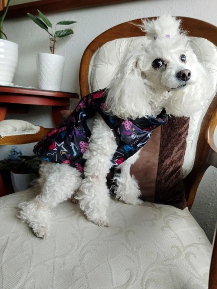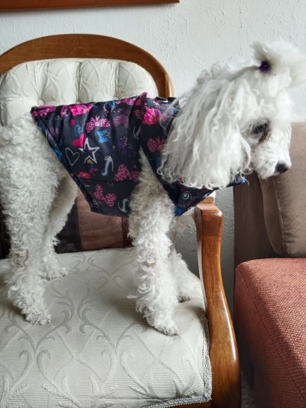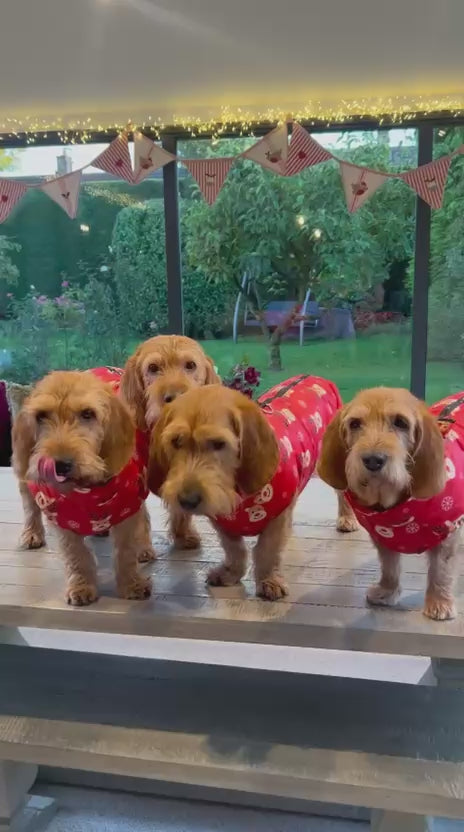 A warm, weather-resistant jacket for festive walks and photos. Lightweight yet cosy with a water-repellent outer and windproof finish. Available in Santa, antlers, and Christmas hat prints, with sizes for small to medium dogs.
